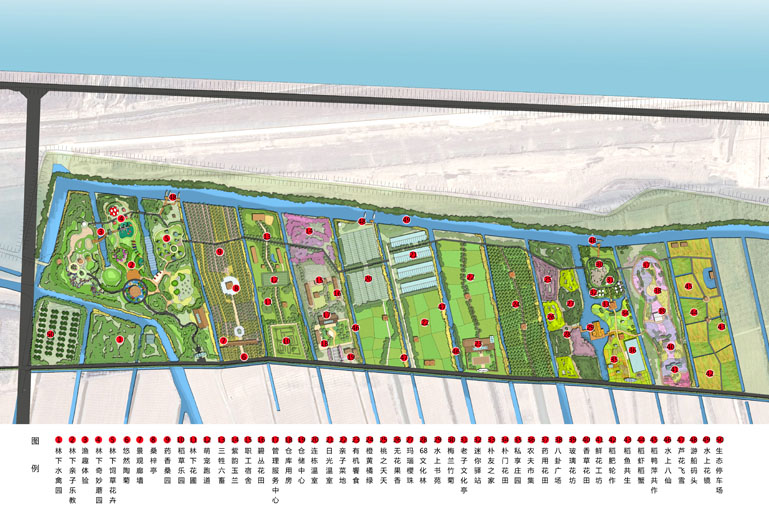 The project area is located in the riverside area in the north of Chongming Island, belonging to Qilong Town, Qidong City. It is the agricultural land of DAAI City, Chongming Island, with a total area of 1454 mu. It is divided into three functional plates, namely ecological nursery area, The area is about 866 mu (280 mu in the West and 586 mu in the East), the park green area is about 333 mu, and the leisure agricultural area is about 255 mu. Among them, the leisure agricultural area is the key planning scope of this case.